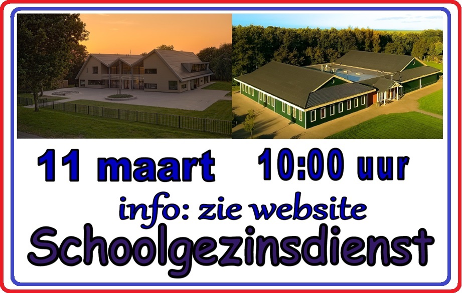 Op zondagmorgen 11 maart wordt er om 10.00 uur een zogenoemde ‘Schoolgezinsdienst’ gehouden. De dienst wordt georganiseerd in samenwerking met basisschool De Klimbeam. Het wordt een dienst waarin alle groepen van de basisschool actief betrokken zijn. Liedjes, gedichten, stellingen, toneel, Bijbellezing en gebed – er is volop variatie! Het belooft een afwisselende en bijzondere morgen te […]